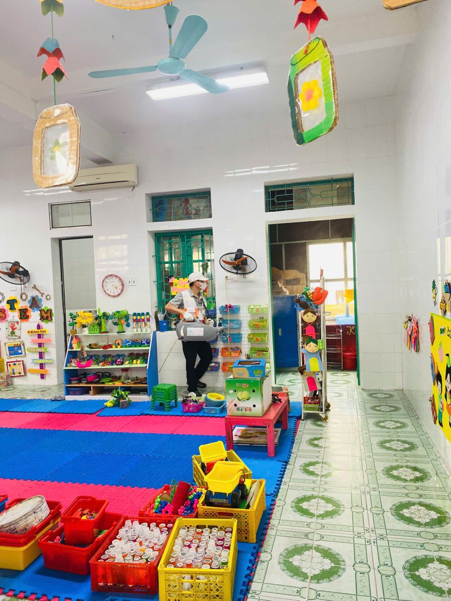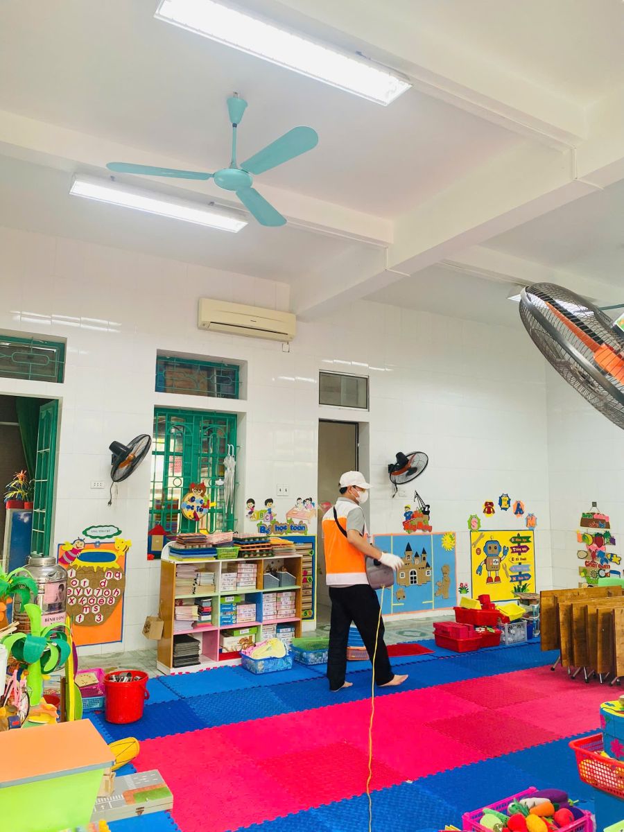 Với sự tư vấn của đội ngũ cán bộ kỹ thuật, nhà trường đã sử dụng loại thuốc diệt muỗi sinh học, đảm bảo hiệu quả, an toàn nhất cho sức khỏe của trẻ và CBGVNV.
