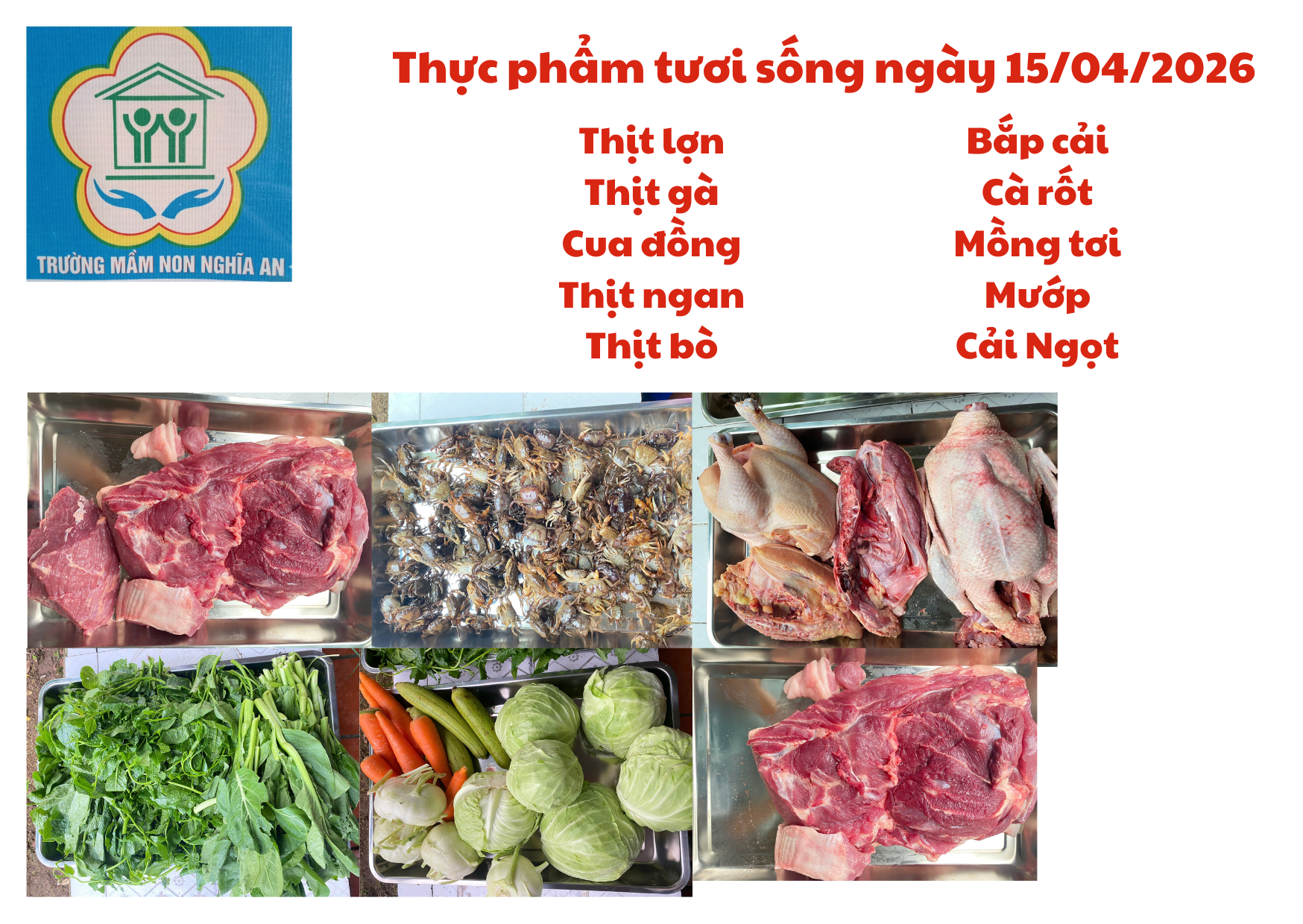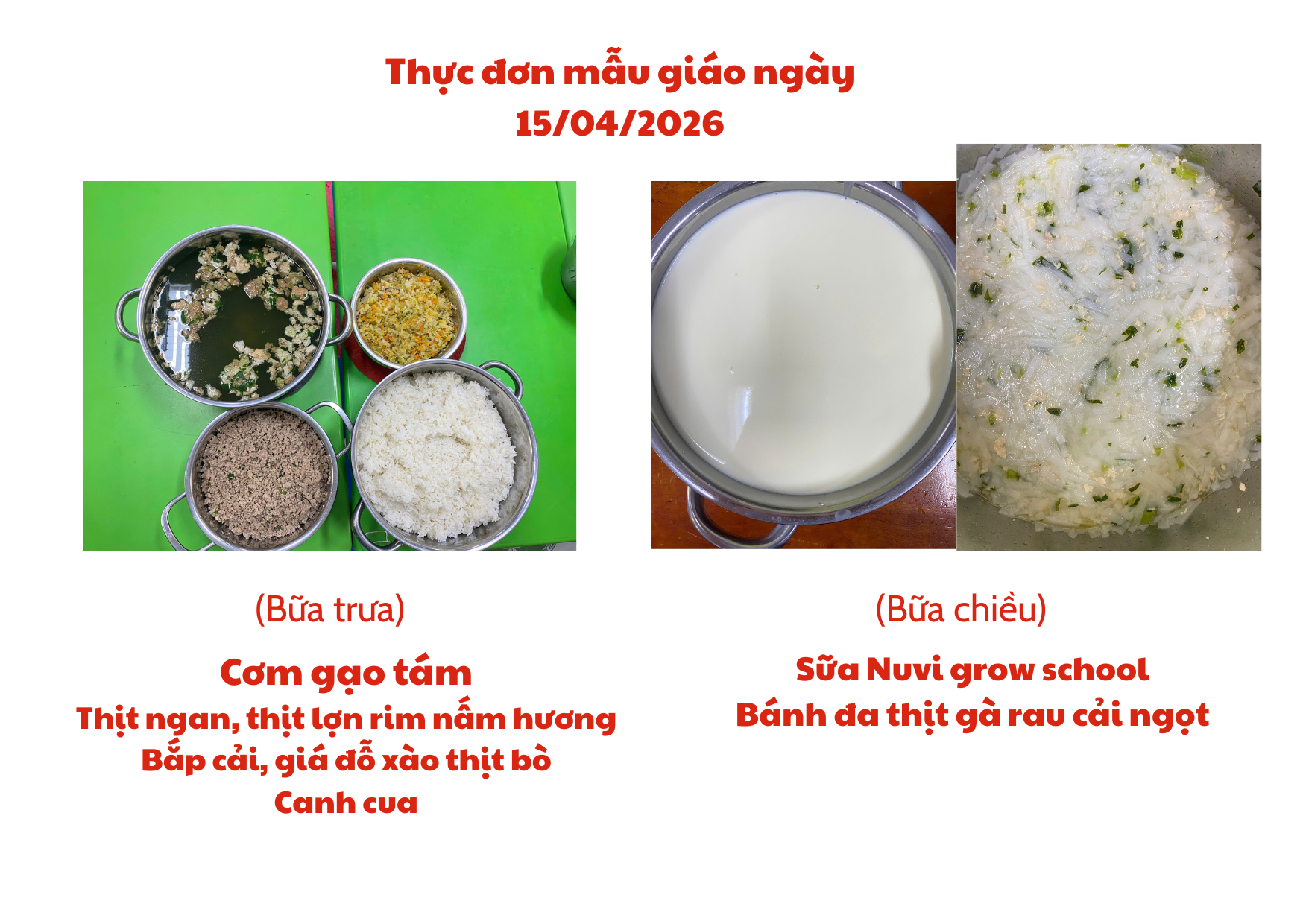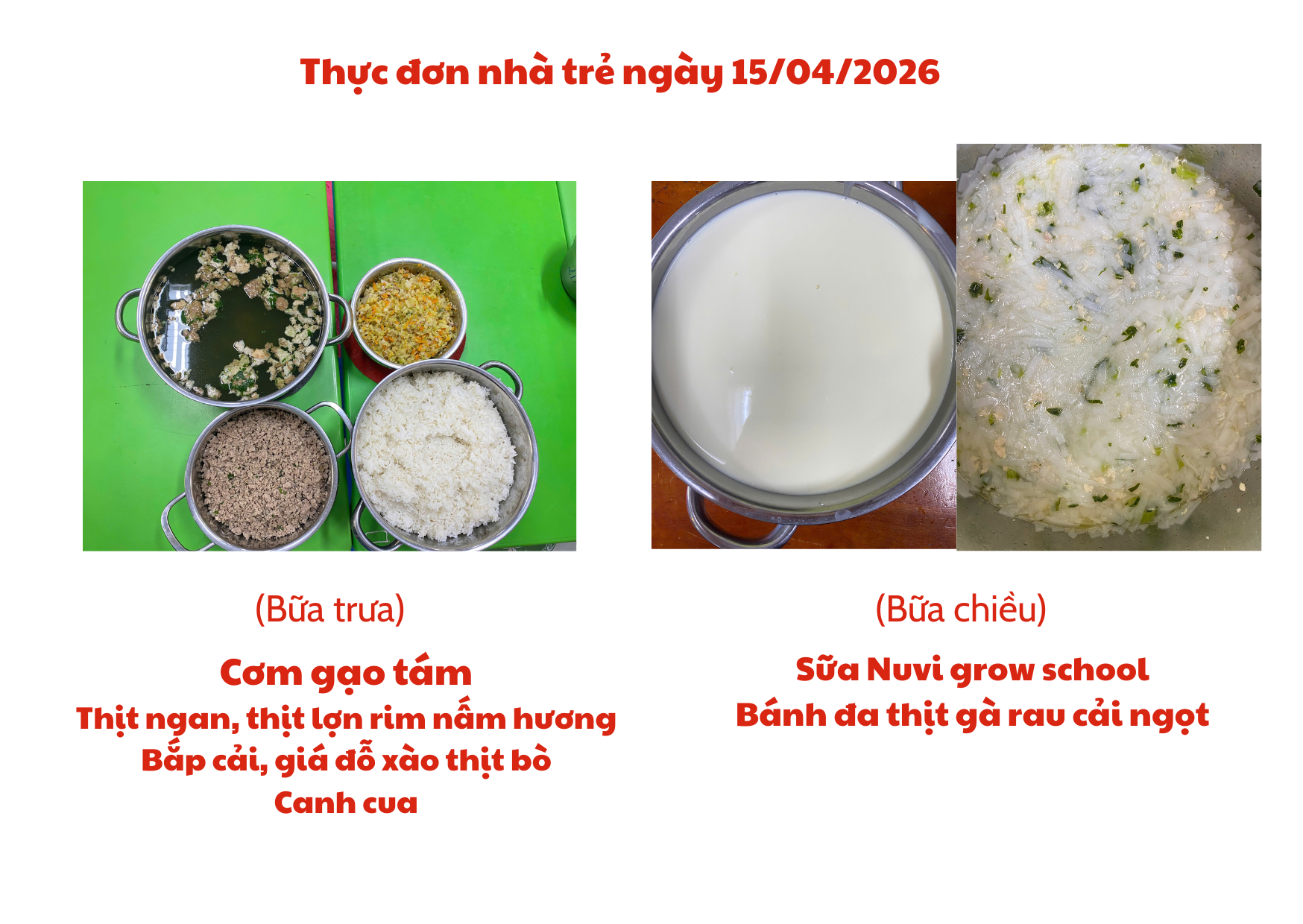 Thực đơn cho trẻ ngày 15/04/2026