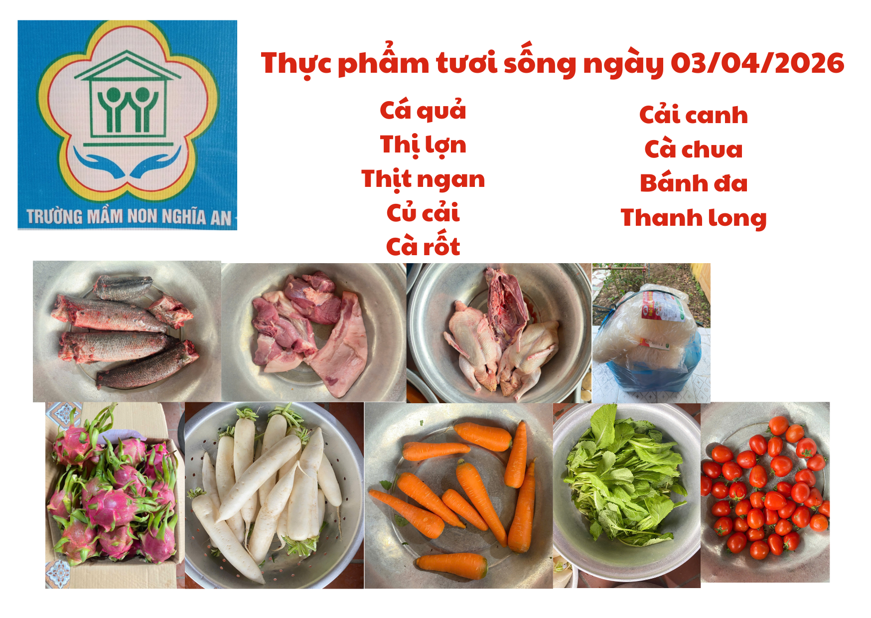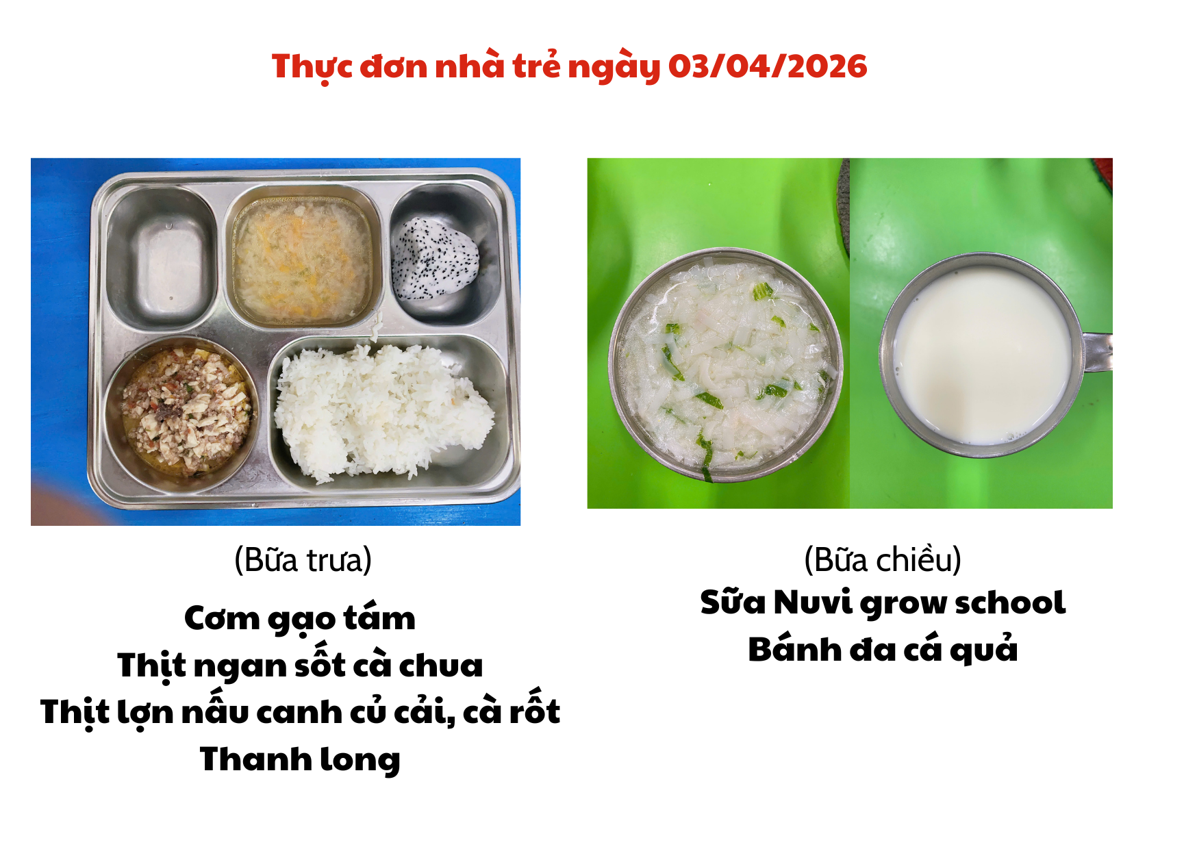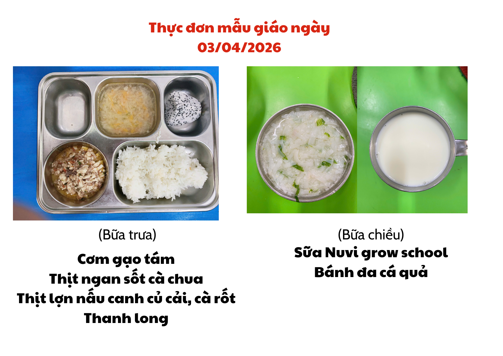 Thực đơn ngày 03/04/2026