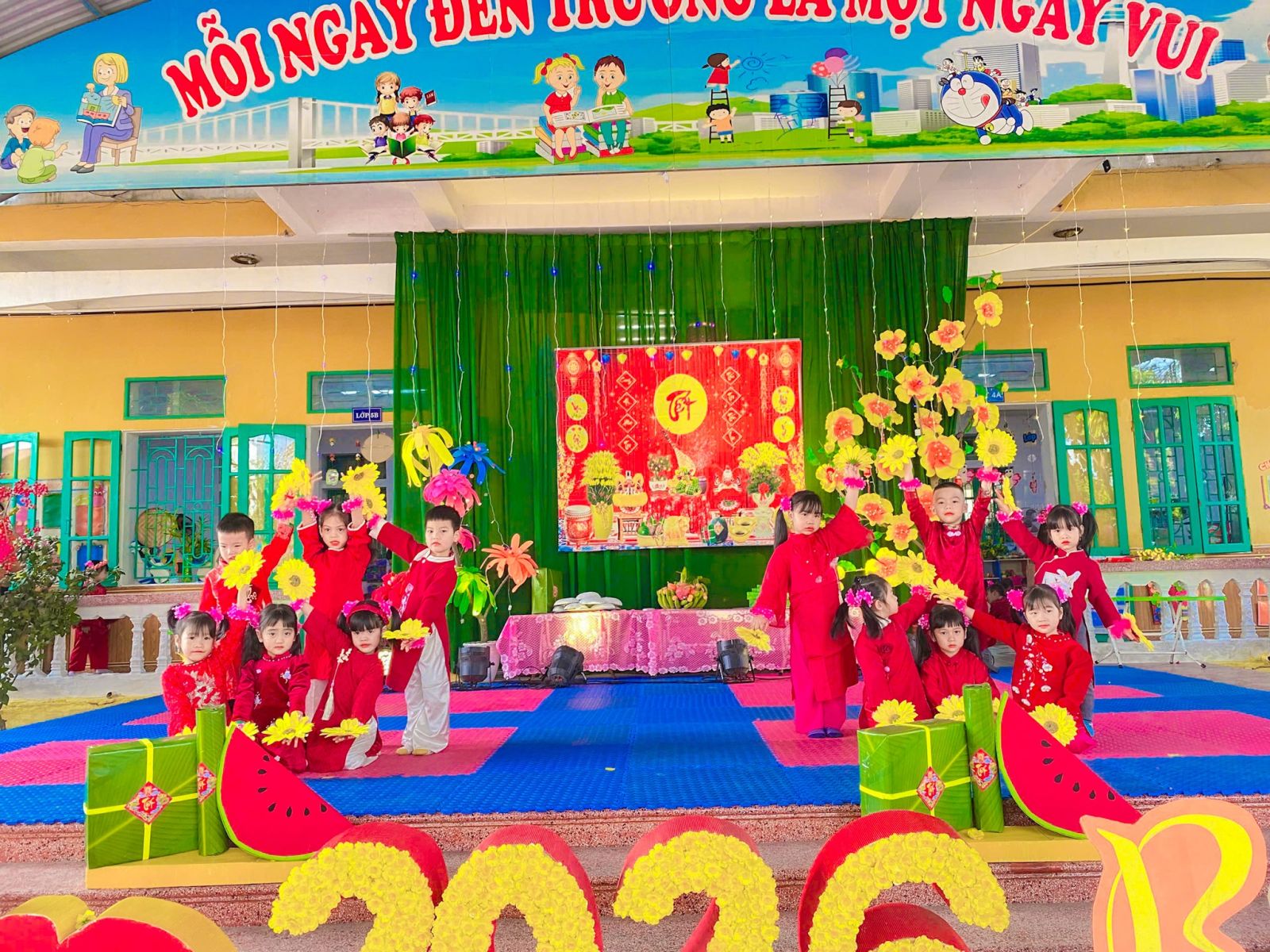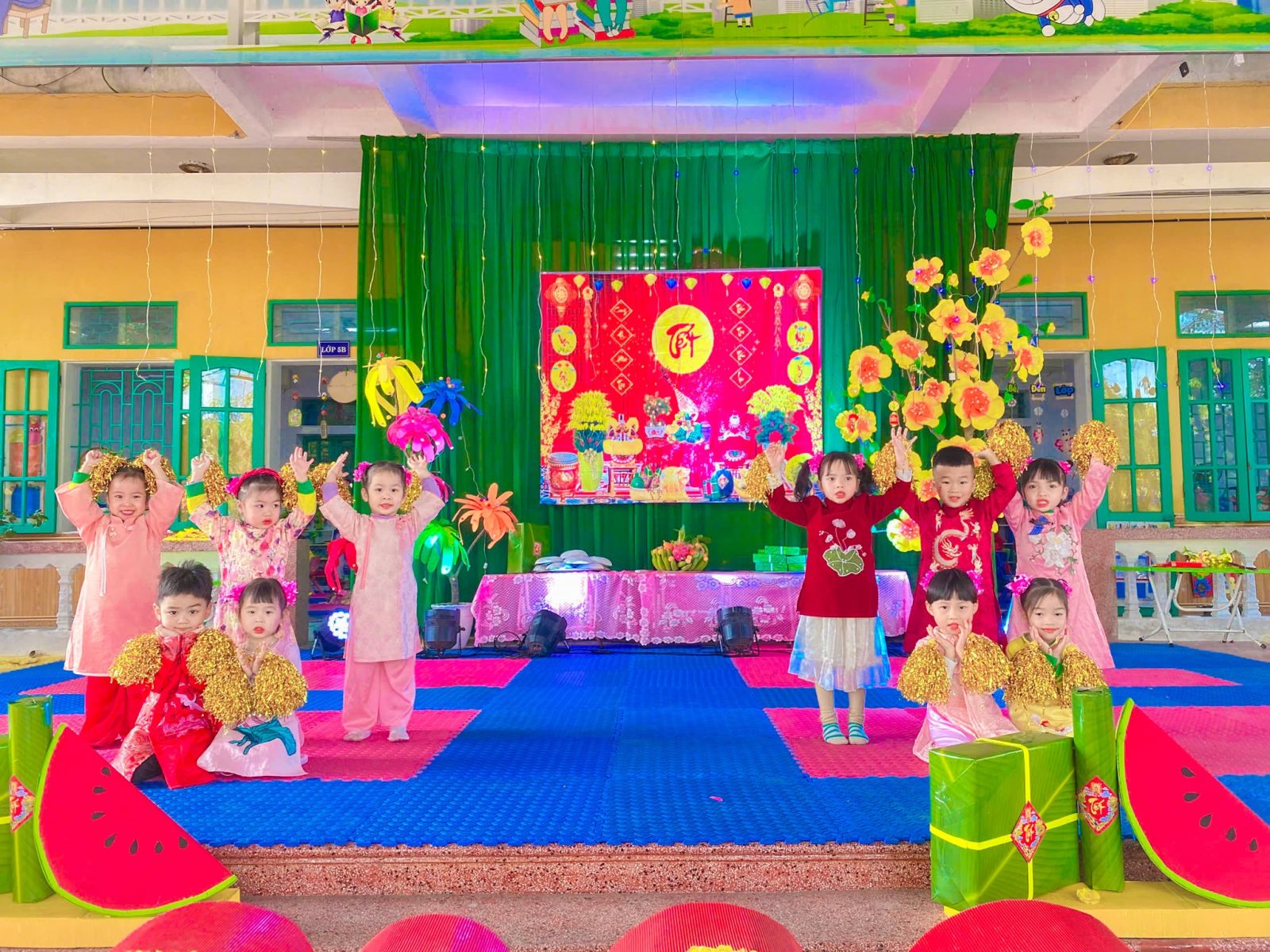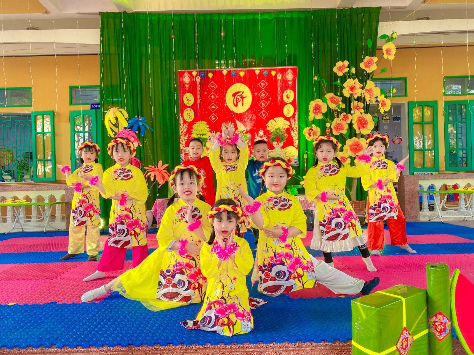 Chương trình mở đầu bằng những tiết mục văn nghệ đặc sắc đến từ các bé khối 4 tuổi và 5 tuổi. Trong bộ trang phục rực rỡ, những điệu múa, lời ca về chủ đề Tết và mùa xuân đã mang đến một không gian tràn đầy sức sống, khiến các bậc phụ huynh và học sinh vô cùng hào hứng.