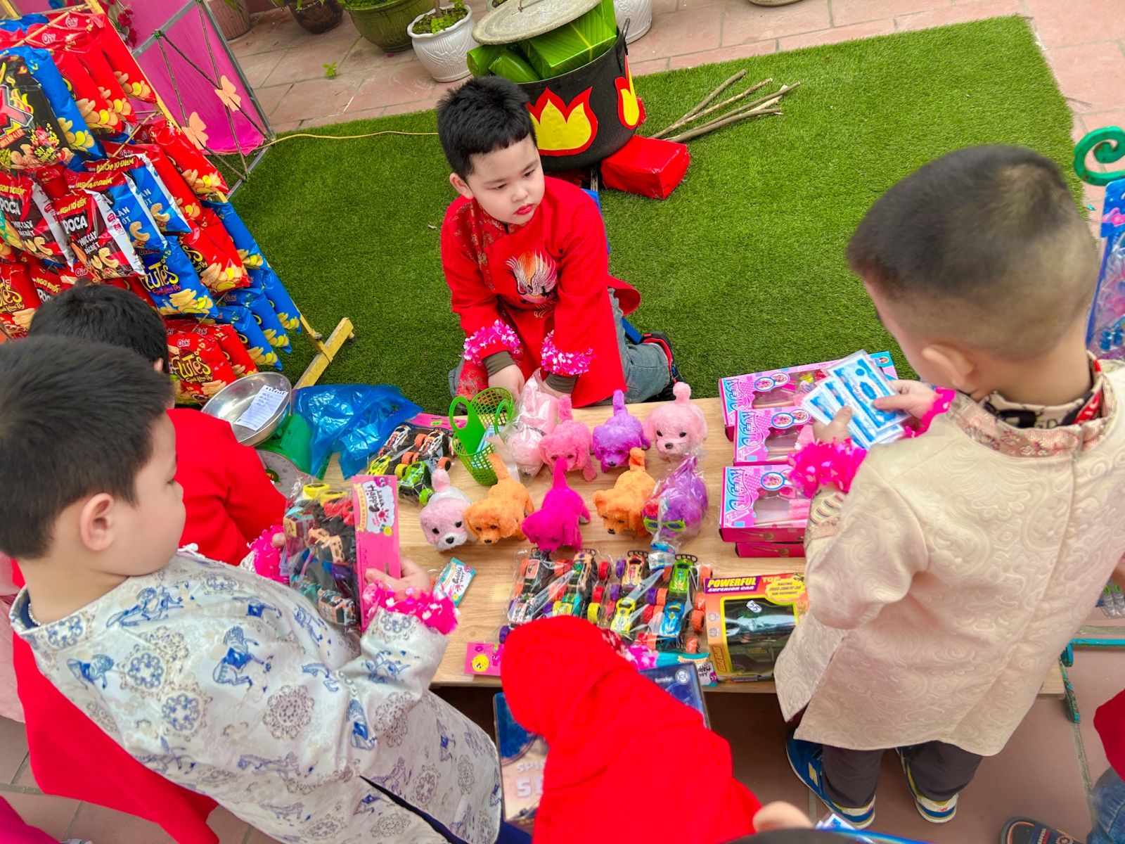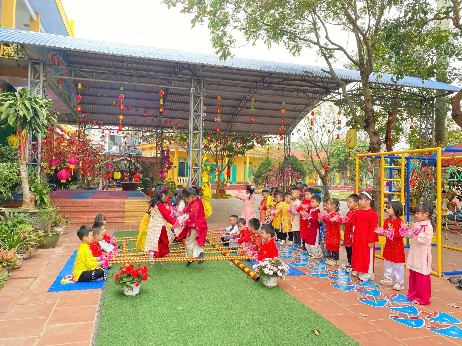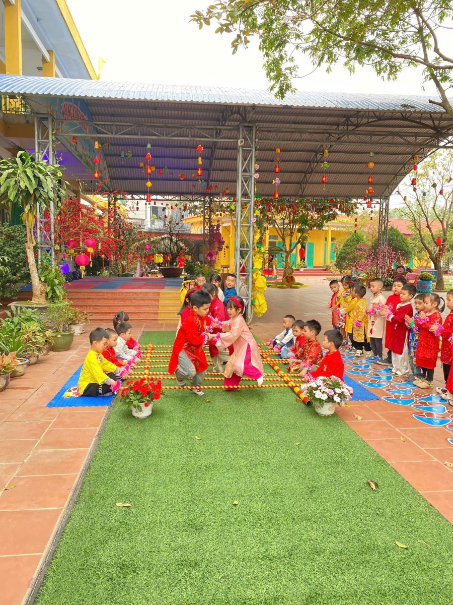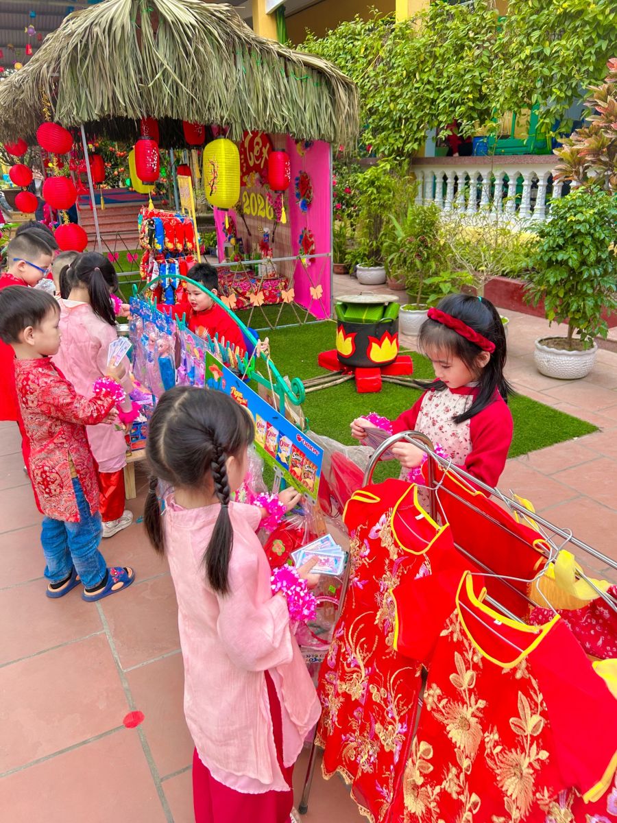 Chương trình mở đầu bằng những tiết mục văn nghệ đặc sắc đến từ các bé khối 4 tuổi và 5 tuổi. Trong bộ trang phục rực rỡ, những điệu múa, lời ca về chủ đề Tết và mùa xuân đã mang đến một không gian tràn đầy sức sống, khiến các bậc phụ huynh và học sinh vô cùng hào hứng.